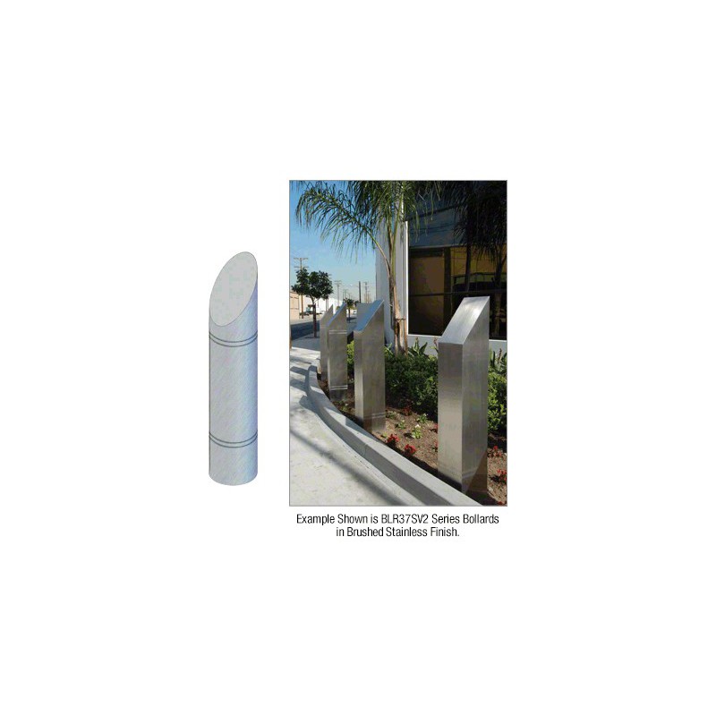 BLR37RV2SND CRL Stainless Steel Bollard 9" Round with Angled Top and Double Line Accents - Non-Directional