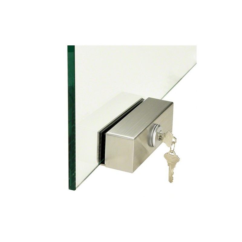 This CRL Slip-On-Lock is designed for 1/2" (12 mm) tempered glass and can be installed without drilling or notching the glass. It contains our standard 777S bottom rail lock used with our DRS door rail system allowing for American type cylinders to be used (DRA10CAM required). This is the perfect lock when glass fabrication is not an option.