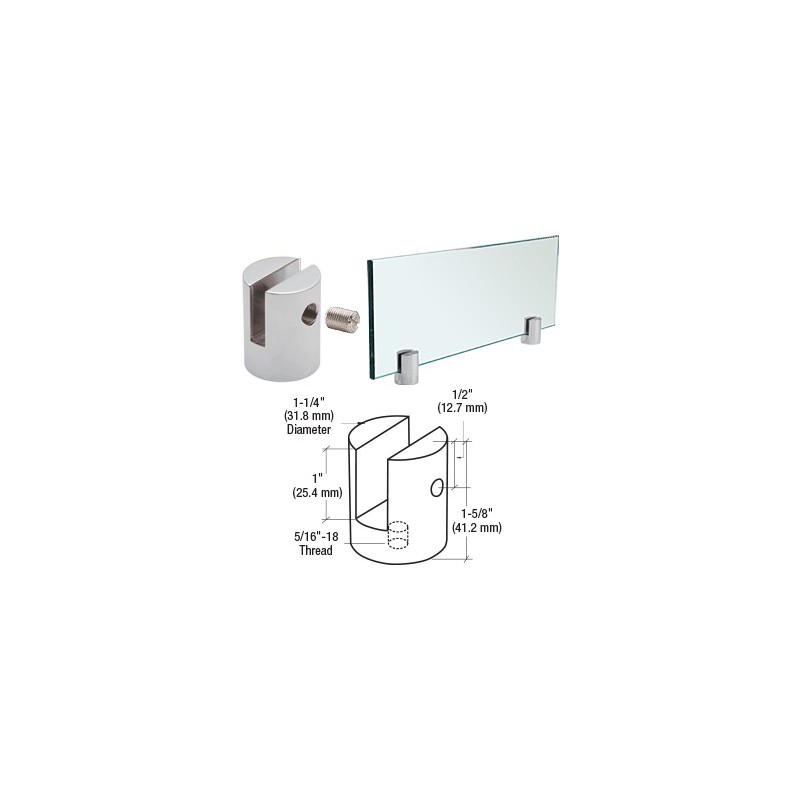 CRL's Slot Mount Standoffs are designed to be mounted either vertically or horizontally, and can be used for installing partition panels, shelving or signage without drilling holes in the material. Nylon tip set screws hold panels firmly in place without damaging panel material or glass. This 1-1/4" (32 mm) diameter slot mount standoff is available to hold 3/8" (10 mm) thick material. Maximum recommended shelf projection from the wall is 5" (127 mm) when standoff is anchored to the wall stud.