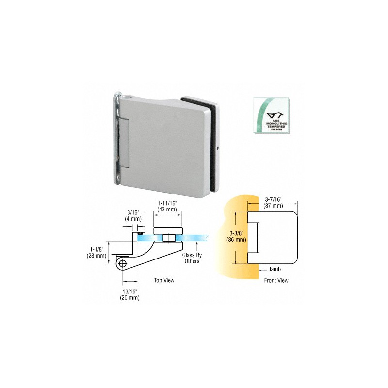 CRL Sofia Interior Door Hinge Kit is of solid aluminum construction with integrated surface mount brackets that can swing open to 180 degrees. The Sofia Kits can accommodate a maximum weight of 99 pounds (45 kg) and a width of 39" (990 mm) per pair of hinges. Only two holes required in glass for each hinge. Includes: Two sofia hinges and gaskets for 5/16" or 3/8" (8 or 10 mm) tempered glass.