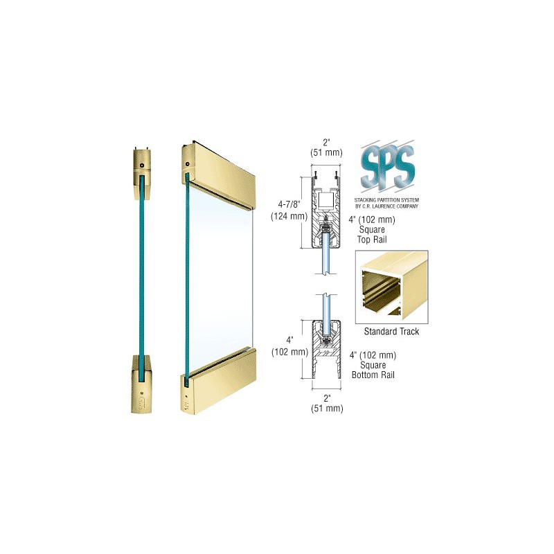 CRL 4" (102 mm) Square Door Rails top and bottom for use with 1/2" (12 mm) tempered glass. You have a choice of five standard Parking Configurations, as well as an endless selection of custom configurations to fit your project. You can have all sliding panels, or a combination of sliding and pivoting panels.