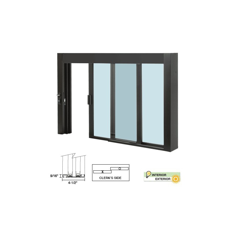 CRL Standard Size Self-Closing Service Windows ship fully assembled, ready to glaze or factory glazed and ready to install. They are designed for heavy-duty commercial use such as drive-thru or walk-up service and are also ideal for interior applications needing enhanced security and performance. The Self-closing function is powered by a hydraulic mechanism concealed in the header. Standard size models are available in Satin Anodized or Duranodic Bronze finish. Different models are available with two types of bottom condition: half-track (no track under sliding panel for clear passage across counter by others) or stainless steel step-sill, with water-dam for exterior applications. CRL also quotes custom versions of these high-quality, popular windows.