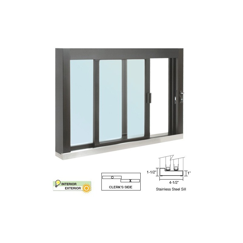 CRL Standard Size Self-Closing Service Windows ship fully assembled, ready to glaze or factory glazed and ready to install. They are designed for heavy-duty commercial use such as drive-thru or walk-up service and are also ideal for interior applications needing enhanced security and performance. The Self-closing function is powered by a hydraulic mechanism concealed in the header. Standard size models are available in Satin Anodized or Duranodic Bronze finish. Different models are available with two types of bottom condition: half-track (no track under sliding panel for clear passage across counter by others) or stainless steel step-sill, with water-dam for exterior applications. CRL also quotes custom versions of these high-quality, popular windows.
