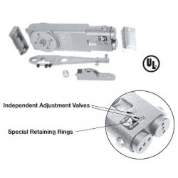 These CRL Overhead Door Closer Kits consist of a Medium Spring Size Door Closer, Mounting Clips, Type "S" Side-Load Arm, and a "DP" Adjustable Dual-Purpose Bottom Pivot Set or "GE" Bottom Pivot Set. The Door Closer has independent, dual-action valves to control closing and latching speeds. Both 90º and 105º Hold Open and No Hold Open models are available. Door Closer Bodies fit into standard 1-3/4" x 4" (44 x 102 mm), or larger, extrusions. Door Closers with different spring sizes or hardware options and Door Closer Bodies with Mounting Clips and Overhead Concealed Door Closer Accessories are available.