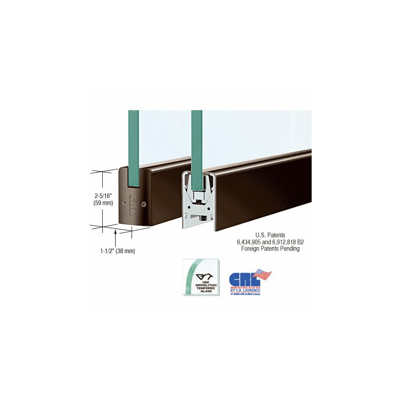 Our CRL Low Profile Door Rail measures only 2-5/16" (59 mm) tall by 1-1/2" (38 mm) wide, and yet it incorporates our patented Wedge-Lock® Glass Securing System (U.S. Patents 6,434,905 and 6,912,818 B2, Canadian Patent 2,419,706, and European Patent No. EP 1 404 939 B1) CRL Low Profile Door Rails come complete with End Caps and are ready-to-install. They also come with installation instructions and adjustment wrenches.