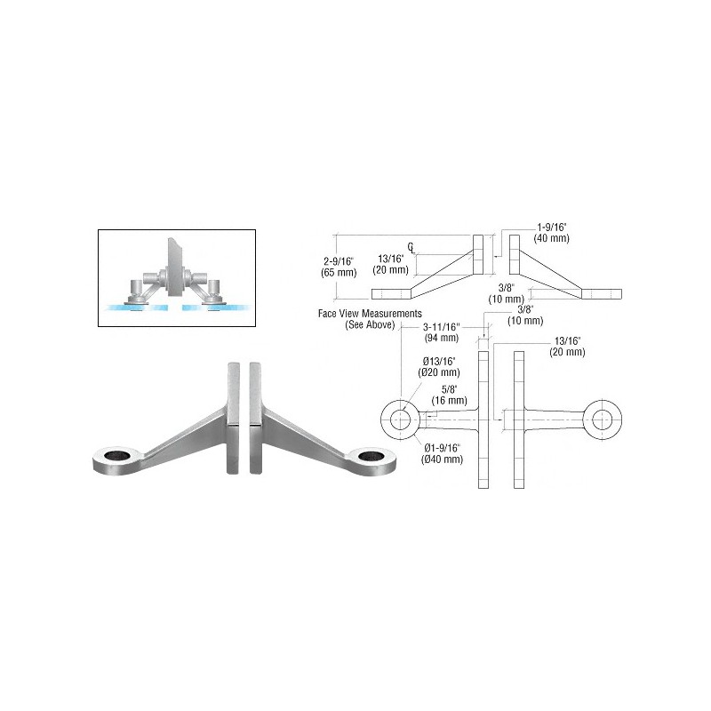 Use this CRL Double Arm Fitting to attach two inline glass panels to a structural fin. Comes with two M10-1.5 x 65 mm (2-9/16") stainless steel threaded studs and four matching cap nuts with washers. Replacement Stud Set is available.
