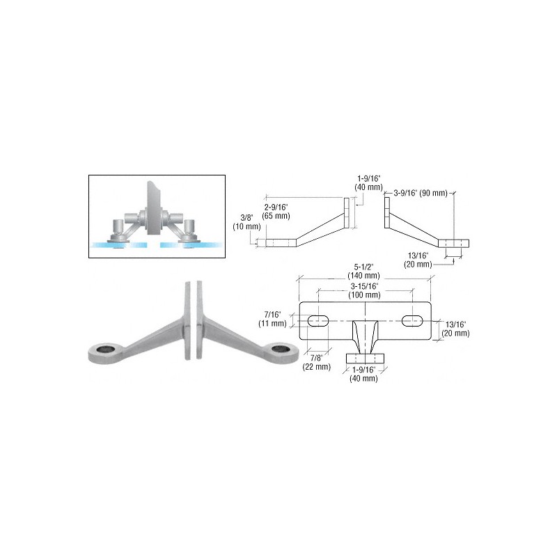 Use this CRL Double Arm Fitting to attach two inline glass panels to a structural fin. Comes with two M10-1.5 x 65 mm (2-9/16") stainless steel threaded studs and four matching cap nuts with washers. Replacement Stud Set is available.