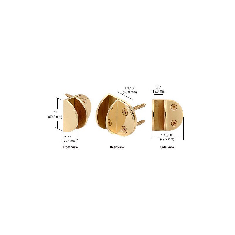 Use CRL Wall Mount Round Front Clamps to join vertical glass panels to walls and provide rigidity to reduce flexing when pressure is applied. All CRL Mall Front Clamps come in polished brass, polished stainless, or brushed stainless finishes, and are designed for 3/8" to 1/2" (10 to 12.7 mm) thick glass. Supplied with two wood screws for installation.