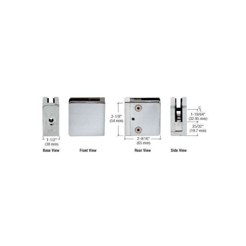 Z91316BS CRL Brushed Stainless Z-Series Flat Surface Mount Square Type Glass Clamps for 13/16" Glass