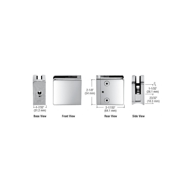 This CRL Z-Series Square Type Radius Base Glass Clamp is designed to be used on glass thickness of 1/2" (12 mm) Glass. Constructed from either zinc or stainless steel, the clamps are the perfect solution for partitions, railings, windbreaks and countless other projects.