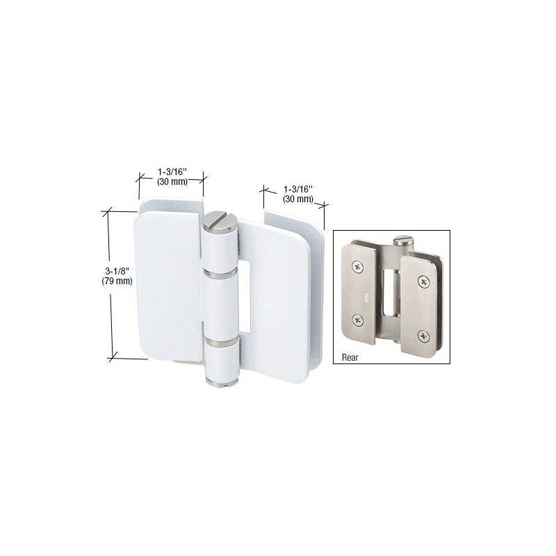 ZUR07WS CRL White Stainless Steel Zurich 07 Series Glass-to-Glass Inline Outswing Hinge