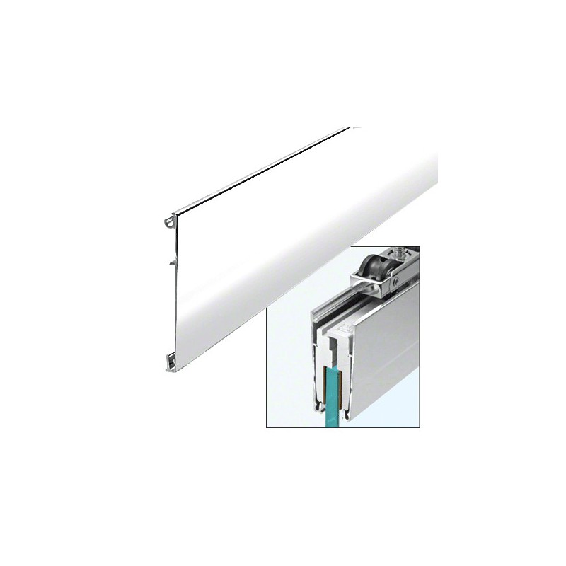 CRL50/51 Hanger Covers are used to create a 'full rail' look on any of the CRL50/51 Series Sliding Door Kits. They are available in white powder coated, brite aluminum, and satin anodized finishes in 118" (3 m) lengths. The covers simply snap over the glass clamps, and are then finished off with Cat. No. CRL3948 Hanger Cover End Caps.