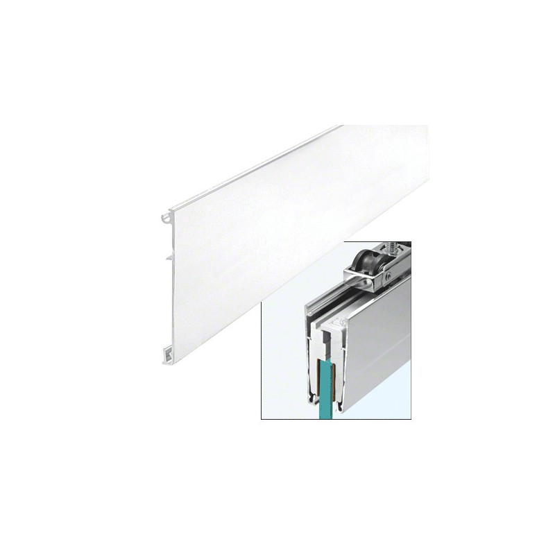 CRL50/51 Hanger Covers are used to create a 'full rail' look on any of the CRL50/51 Series Sliding Door Kits. They are available in white powder coated, brite aluminum, and satin anodized finishes in 118" (3 m) lengths. The covers simply snap over the glass clamps, and are then finished off with Cat. No. CRL3948 Hanger Cover End Caps.