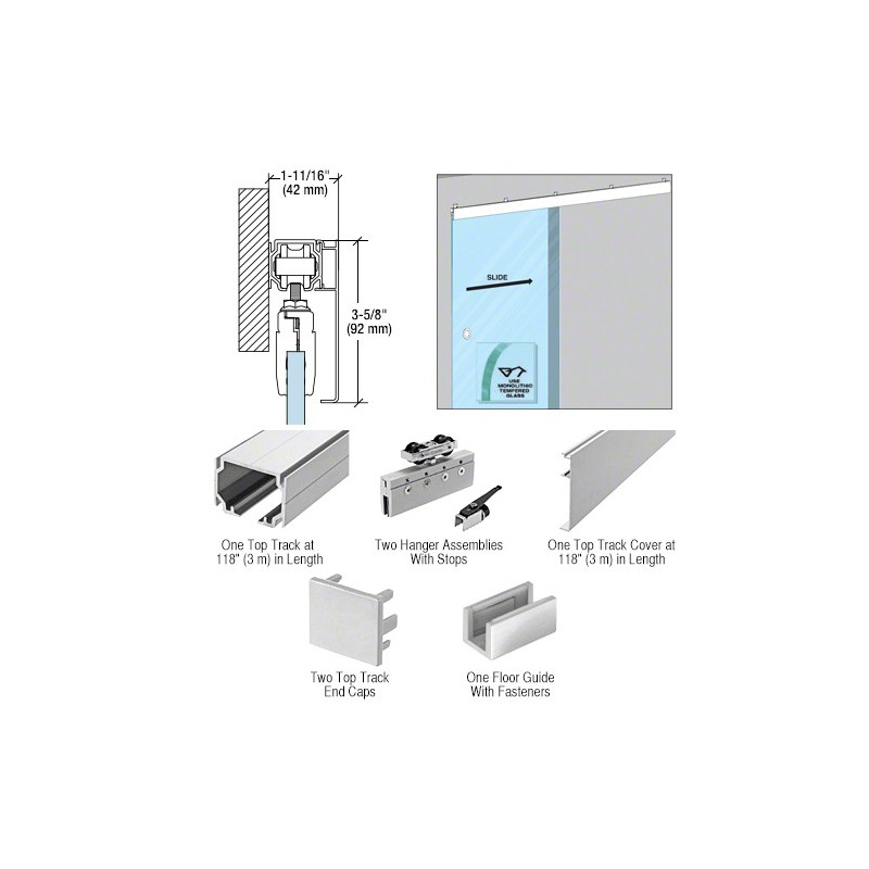 CRL501 CRL50 Satin Anodized Series Single Sliding Door with Fixed Panel Wall Mount Kit