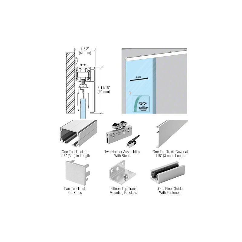 CRL501 CRL50 Satin Anodized Series Single Sliding Door with Fixed Panel Wall Mount Kit