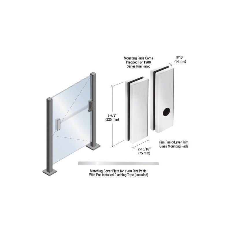 Designed for Mounting 1900 Series Rim Panics and Lever Trim to 1/2" (12 mm) Tempered Glass Gates