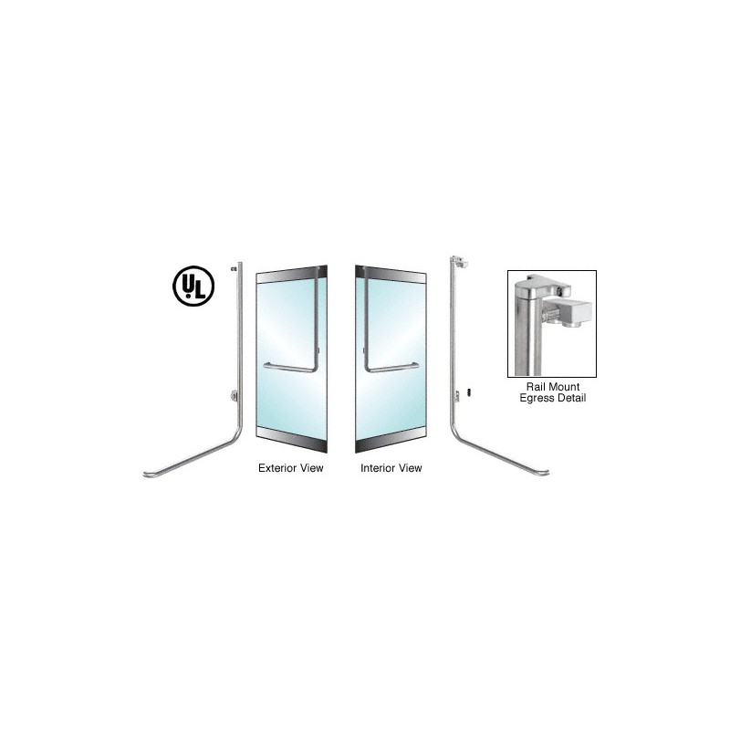 EG100D2RPPS CRL-Blumcraft Polished Stainless Left Hand Double Acting Rail Mount No Cylinder "D" Exterior Top Securing Electronic Egress Control Handle