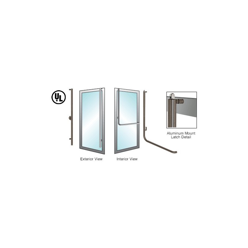 PA100FS4APBS CRL-Blumcraft Brushed Stainless Left Hand Reverse Aluminum Door Mount Retainer Plate "FS" Exterior, Top Securing Panic Handle