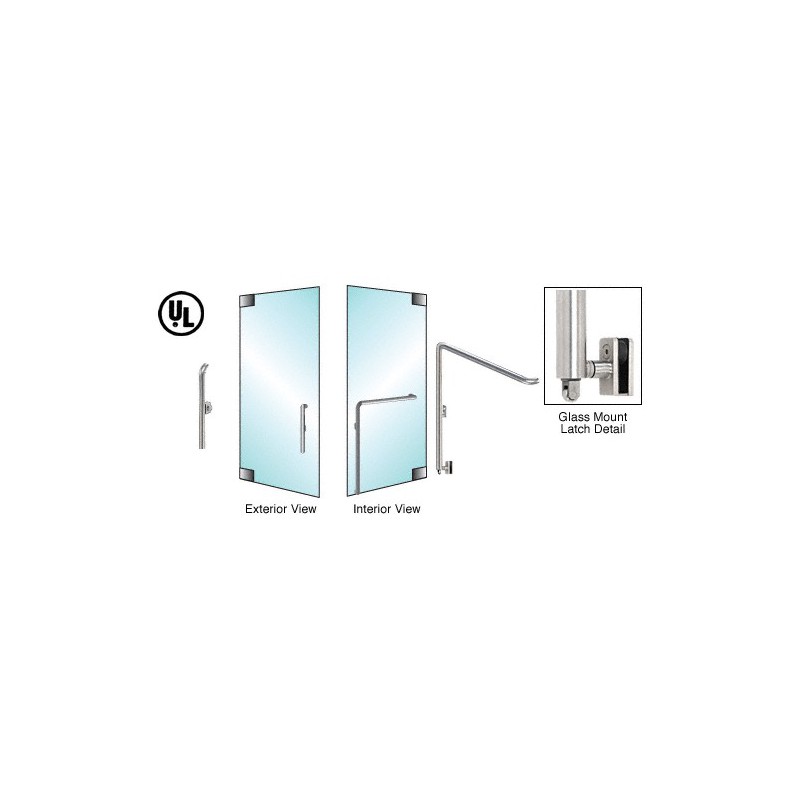 This CRL Glass Door Panic Handle is designed to allow maximum view and a contemporary look to 1/2" or 3/4" (12 or 19 mm) tempered glass doors. Installations can be made on single or double doors. For your convenience, we have designed the handles so they are ready-to-install on 36" to 48" (914 mm to 1.22 m) wide doors ranging in height from 90" to 102" (2.29 to 2.59 m) high without modifications. "Dogging", locking the device in the open position, is easy with just a slide of a knob. A Door Stop/Strike must be ordered separately. Threshold Strike Plate available for PA110 Series. Custom Header available with your choice of pre-installed hardware.