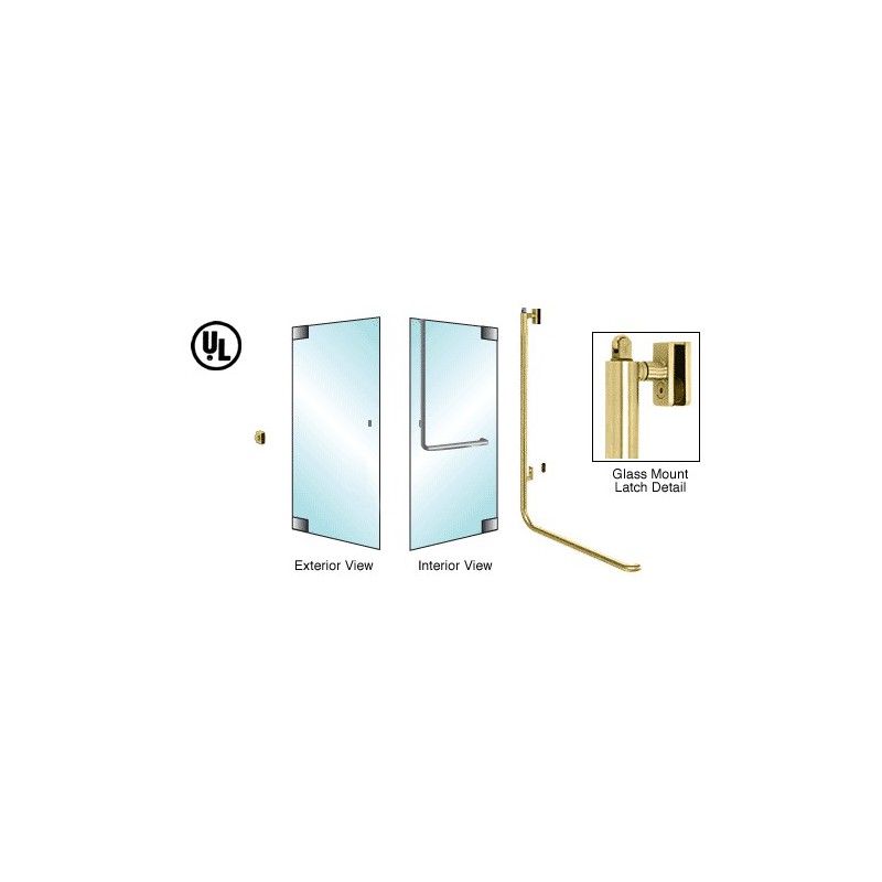 PA100Z4GKPB CRL-Blumcraft Polished Brass Left Hand Reverse Glass Mount Keyed Access "Z" Exterior, Top Securing Panic Handle