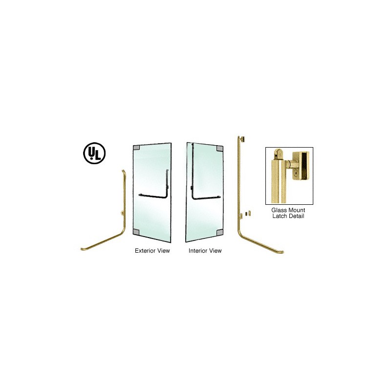 PA100B4GKSB CRL-Blumcraft Satin Brass Left Hand Reverse Glass Mount Keyed Access "B" Exterior, Top Securing Panic Handle