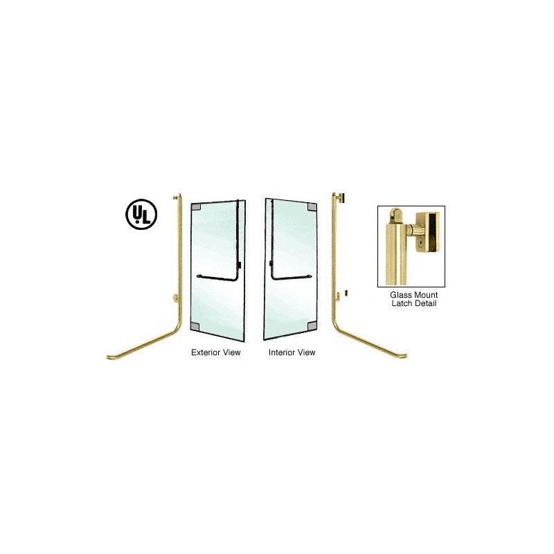 PA100D4GKPB CRL-Blumcraft Polished Brass Left Hand Reverse Glass Mount Keyed Access "D" Exterior, Top Securing Panic Handle