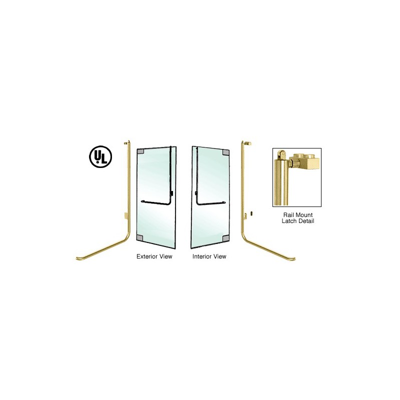 PA100D4GKPB CRL-Blumcraft Polished Brass Left Hand Reverse Glass Mount Keyed Access "D" Exterior, Top Securing Panic Handle