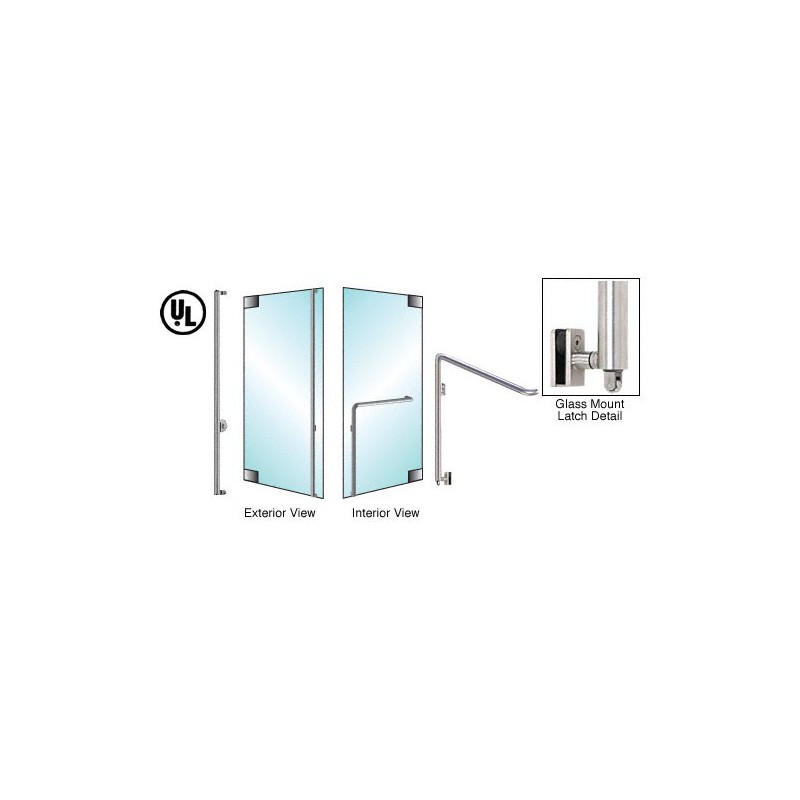 PA110F4GKBS CRL-Blumcraft Brushed Stainless Left Hand Reverse Glass Mount Keyed Access "F" Exterior Bottom Securing Panic Handle