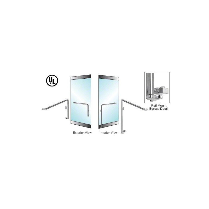 3E110E4RKPS CRL-Blumcraft Polished Stainless Left Hand Reverse Rail Mount Keyed Access 'E' Exterior Bottom Securing Electronic Egress Control Handle for 3/4" Glass
