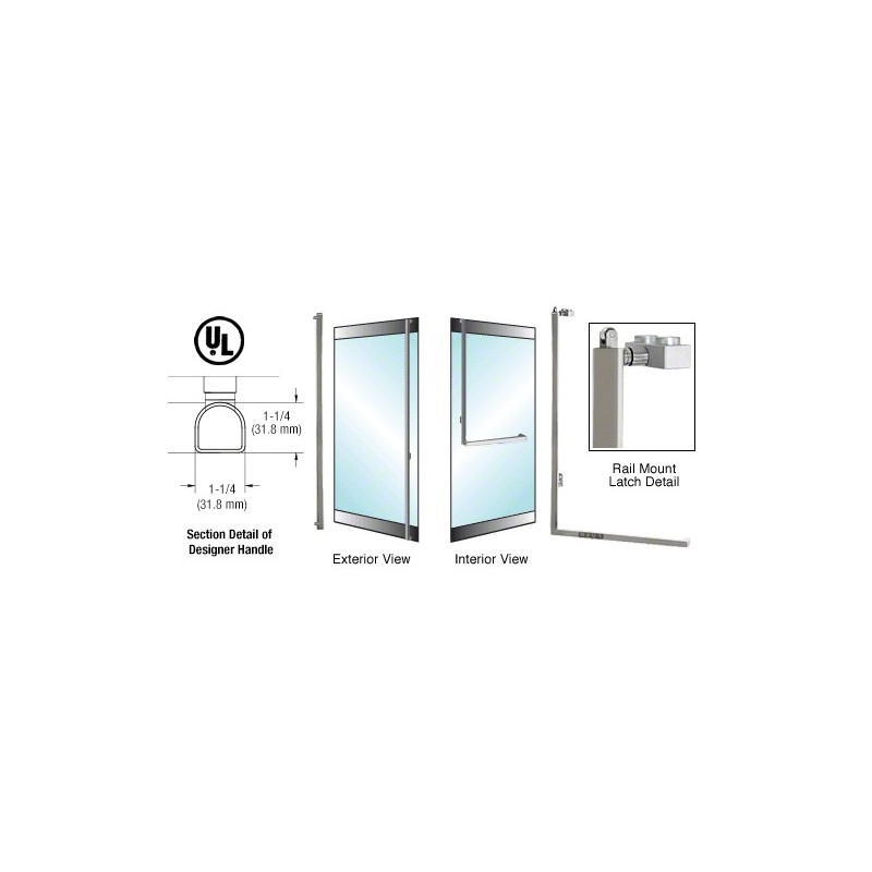5DP100F4RPBS CRL-Blumcraft Brushed Stainless Left Hand Reverse Rail Mount Retainer Plate 'F' Exterior, 'D' Shape Top Securing Panic Handle for 5/8" Glass