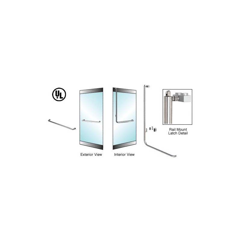 This CRL-Blumcraft® Glass Door Panic Handle is designed to allow maximum view and a contemporary look to 3/4" (19 mm) tempered glass doors. Installations can be made on single or double doors. For your convenience, we have designed the handles so they are ready-to-install on 36" to 48" (914 mm to 1.22 m) wide doors ranging in height from 90" to 102" (2.29 to 2.59 m) high without modifications. "Dogging", locking the device in the open position, is easy with just a slide of a knob. A Door Stop/Strike must be ordered separately. Threshold Strike Plate available for PA110 Series. Custom Header available with your choice of pre-installed hardware.