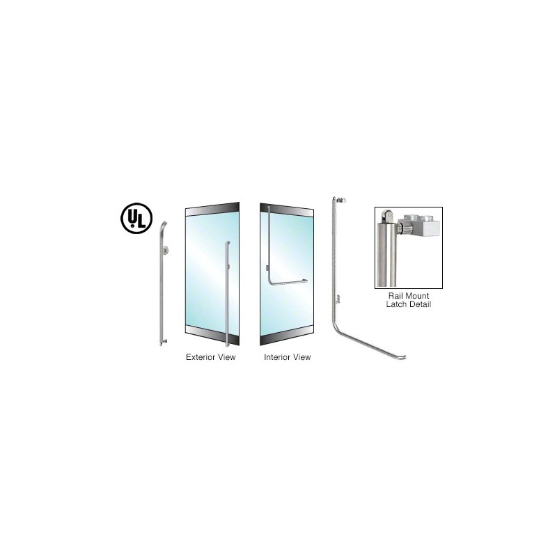PA100M4RKBS CRL-Blumcraft Brushed Stainless Left Hand Reverse Rail Mount Retainer Plate 'M' Exterior, Top Securing Panic Handle