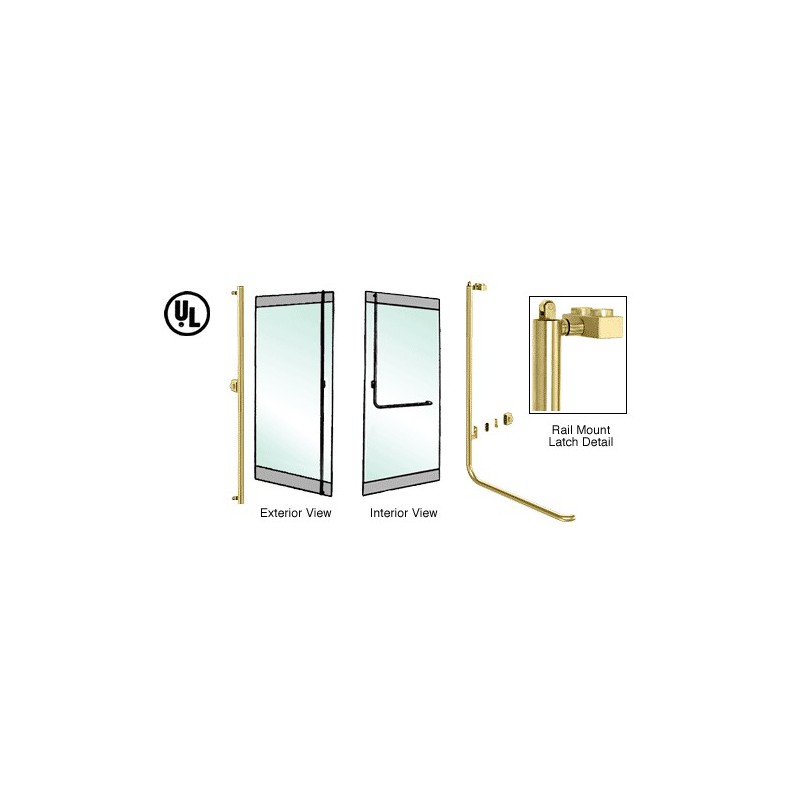 3P100F4RKPB CRL-Blumcraft Polished Brass Left Hand Reverse Rail Mount Keyed Access 'F' Exterior, Top Securing Panic Handle for 3/4" Glass