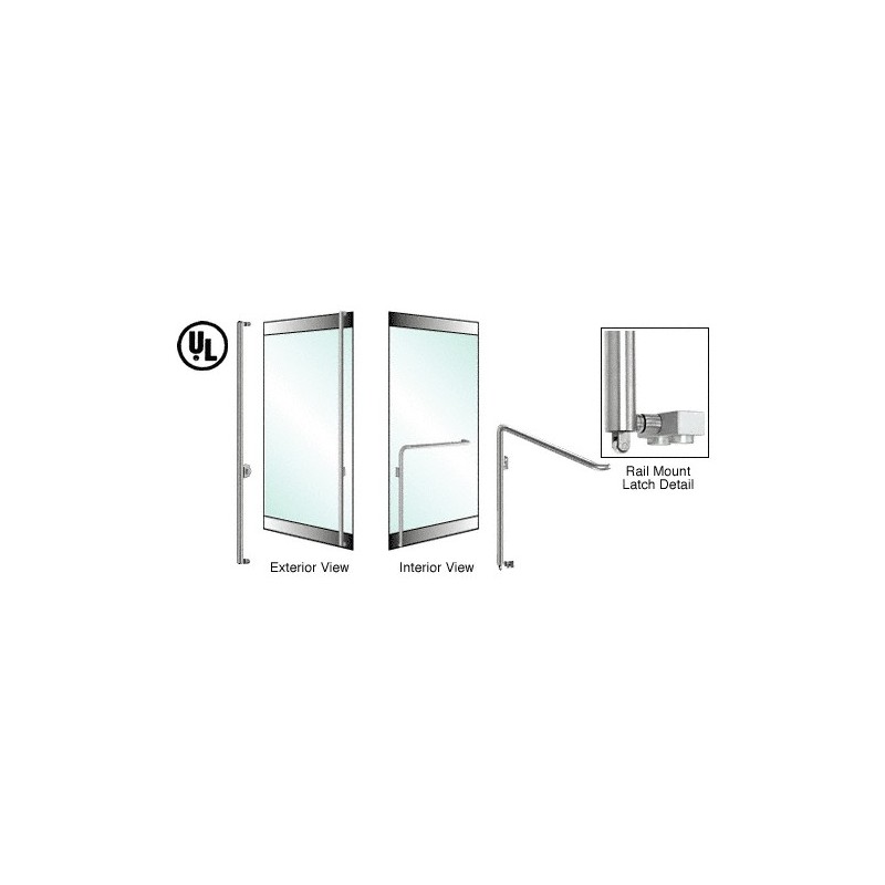 This CRL-Blumcraft® Glass Door Panic Handle is designed to allow maximum view and a contemporary look to 3/4" (19 mm) tempered glass doors. Installations can be made on single or double doors. For your convenience, we have designed the handles so they are ready-to-install on 36" to 48" (914 mm to 1.22 m) wide doors ranging in height from 90" to 102" (2.29 to 2.59 m) high without modifications. "Dogging", locking the device in the open position, is easy with just a slide of a knob. A Door Stop/Strike must be ordered separately. Threshold Strike Plate available for PA110 Series. Custom Header available with your choice of pre-installed hardware.