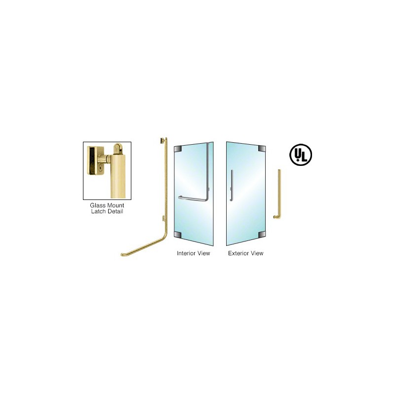 PA100H3GKSB CRL-Blumcraft Satin Brass Right Hand Reverse Glass Mount Keyed Access 'H' Exterior, Top Securing Panic Handle