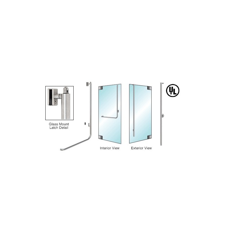 This CRL-Blumcraft® Glass Door Panic Handle is designed to allow maximum view and a contemporary look to 3/4" (19 mm) tempered glass doors. Installations can be made on single or double doors. For your convenience, we have designed the handles so they are ready-to-install on 36" to 48" (914 mm to 1.22 m) wide doors ranging in height from 90" to 102" (2.29 to 2.59 m) high without modifications. "Dogging", locking the device in the open position, is easy with just a slide of a knob. A Door Stop/Strike must be ordered separately. Threshold Strike Plate available for PA110 Series. Custom Header available with your choice of pre-installed hardware.