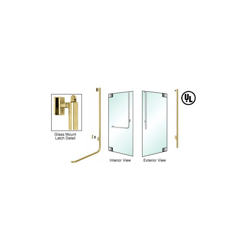PA100JS3GPSB CRL-Blumcraft Satin Brass Right Hand Reverse Glass Mount Retainer Plate "JS" Exterior, Top Securing Panic Handle