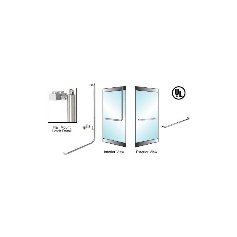 This CRL-Blumcraft® Glass Door Panic Handle is designed to allow maximum view and a contemporary look to 3/4" (19 mm) tempered glass doors. Installations can be made on single or double doors. For your convenience, we have designed the handles so they are ready-to-install on 36" to 48" (914 mm to 1.22 m) wide doors ranging in height from 90" to 102" (2.29 to 2.59 m) high without modifications. "Dogging", locking the device in the open position, is easy with just a slide of a knob. A Door Stop/Strike must be ordered separately. Threshold Strike Plate available for PA110 Series. Custom Header available with your choice of pre-installed hardware.