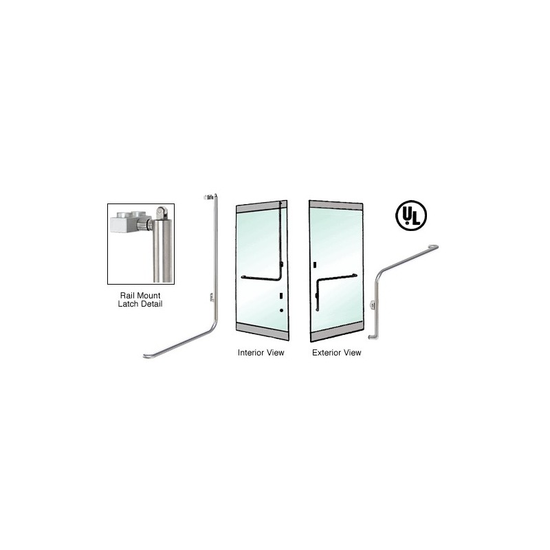 3P100E3RPBS CRL-Blumcraft Brushed Stainless Right Hand Reverse Rail Mount Retainer Plate 'E' Exterior, Top Securing Panic Handle for 3/4" Glass