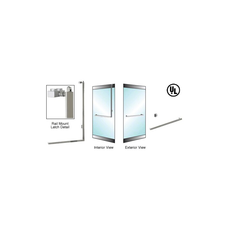 This CRL Glass Door Panic Handle is designed to allow maximum view and a contemporary look to 3/4" (19 mm) tempered glass doors. Installations can be made on single or double doors. For your convenience, we have designed the handles so they are ready-to-install on 36" to 48" (914 mm to 1.22 m) wide doors ranging in height from 90" to 102" (2.29 to 2.59 m) high without modifications. "Dogging", locking the device in the open position, is easy with just a slide of a knob. A Door Stop/Strike must be ordered separately. Threshold Strike Plate available for PA110 Series. Custom Header available with your choice of pre-installed hardware.