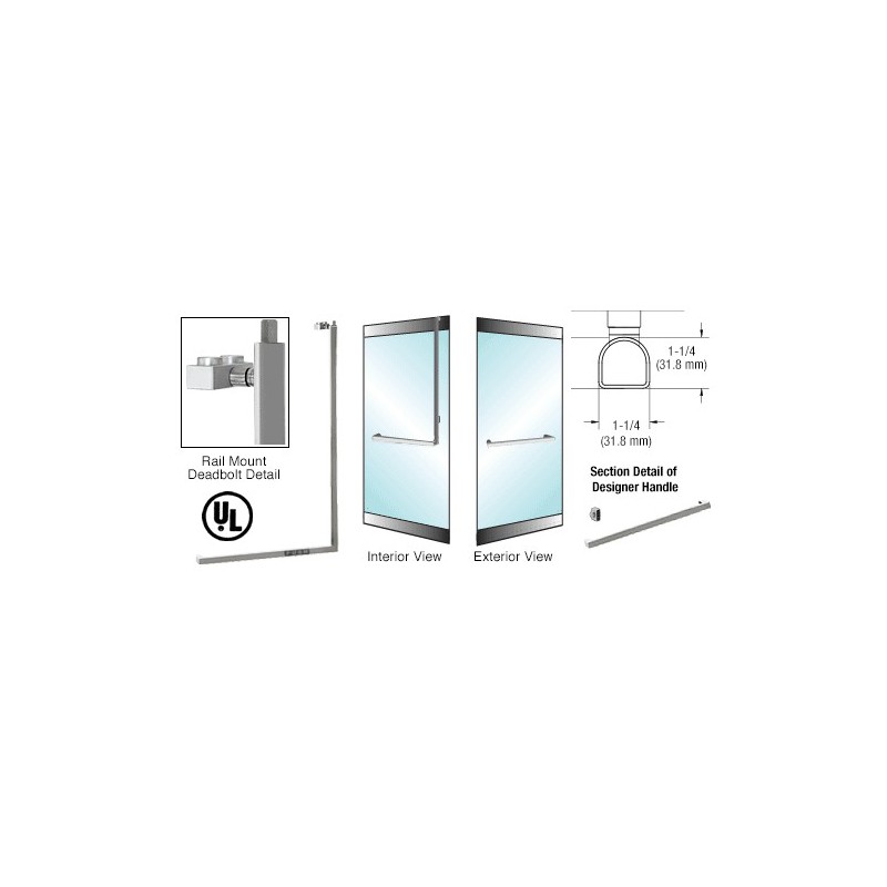 3DP100A3RKBS CRL-Blumcraft Brushed Stainless Right Hand Reverse Rail Mount Keyed Access "A" Exterior, Designer Series Panic Handle for 3/4" Glass