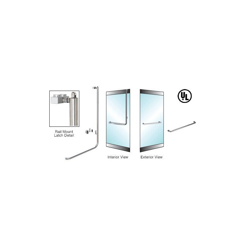 3DP100A3RKBS CRL-Blumcraft Brushed Stainless Right Hand Reverse Rail Mount Keyed Access "A" Exterior, Designer Series Panic Handle for 3/4" Glass
