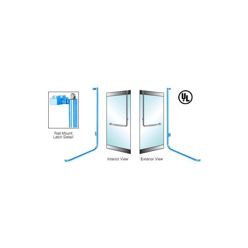 3P100D3RPPS CRL-Blumcraft Polished Stainless Right Hand Reverse Rail Mount No Cylinder "D" Exterior Top Securing Panic Handle for 3/4" Glass
