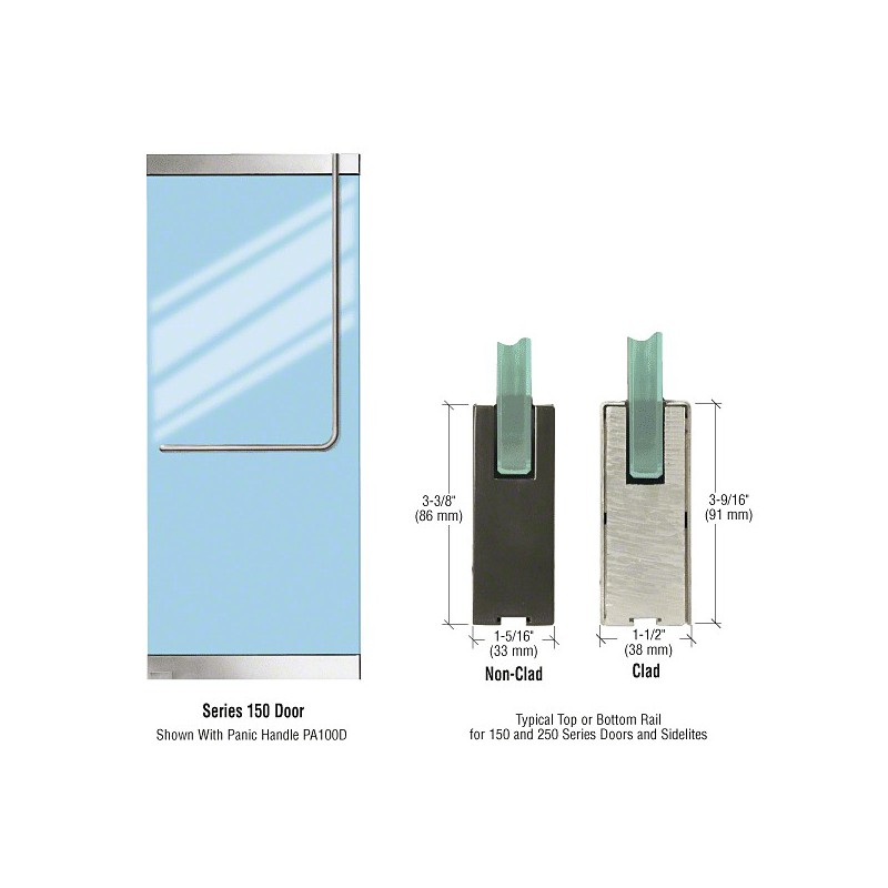 CRL-Blumcraft 150 Series Doors and Sidelites are supplied fully glazed with 1/2", 5/8" or 3/4" (12, 16 or 19 mm) tempered glass in clear, tinted or low-iron. Rails are bonded to the glass, and can be prepped for a wide variety of door closer and pivot hardware. A bottom rail lock option is available, or the doors can come complete with any of our Egress Handles mounted on the door, ready-to-install in the opening.