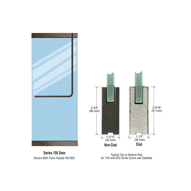 CRL-Blumcraft 150 Series Doors and Sidelites are supplied fully glazed with 1/2", 5/8" or 3/4" (12, 16 or 19 mm) tempered glass in clear, tinted or low-iron. Rails are bonded to the glass, and can be prepped for a wide variety of door closer and pivot hardware. A bottom rail lock option is available, or the doors can come complete with any of our Egress Handles mounted on the door, ready-to-install in the opening.