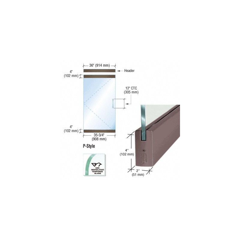 P4DU12SE CRL Black Bronze Dry Glazed Frameless Glass 3'-0" P-Style Single Door Complete Entrance Kit - without Lock