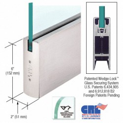 CRL Profilé carré pour porte à deux vantaux, sans serrure, 152 mm (6 po), verre de 9,5 et 12,7 mm (3/8 et 1/2 po) d'épaisseur, sur mesure