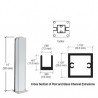 Dimensions des poteaux de cloisons CRL entièrement montés : 29 mm (1-1/8 po) carrés ; dimension des supports de charnières de poteau : 51 mm (2 po) carrés. Les profilés de vitrage recouvrent toute la longueur et dépassent de 11,9 mm (15/32 po) de la surface du poteau. Dimensions sur mesure disponibles.