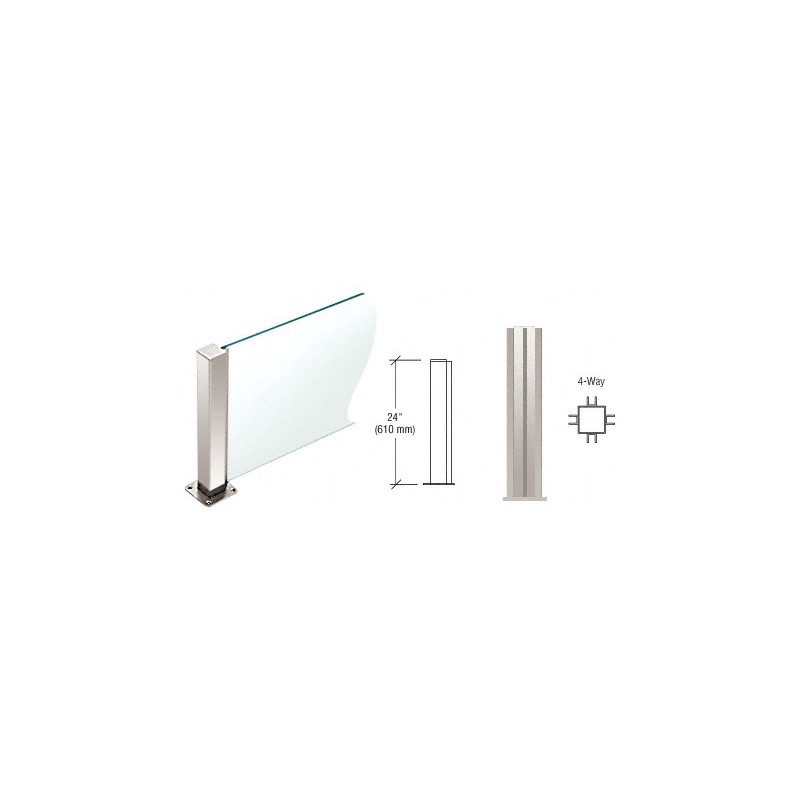 PP4324XPS CRL srie Elegant PP43, Poteau de comptoir/cloison carr de 38 mm (1-1/2 po), 4 dparts, 610 mm (24 po) de haut, acier inoxydable poli