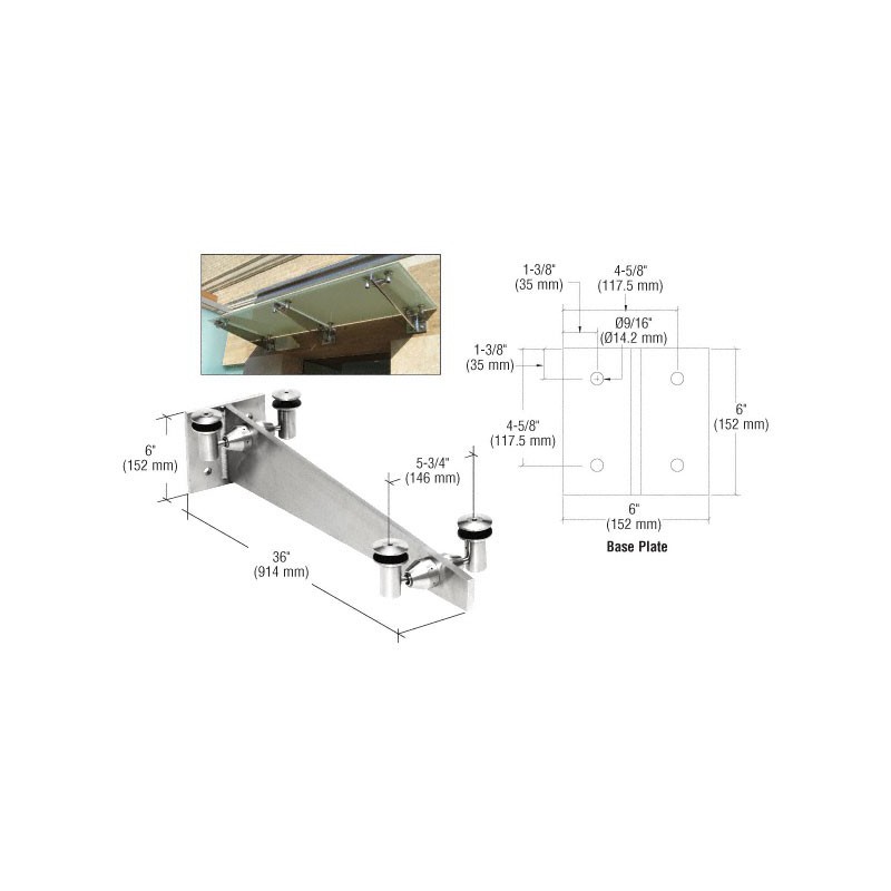 GAB36BS CRL Fixation murale universelle pour marquise en verre, 914 mm (36 po), acier inoxydable bross
